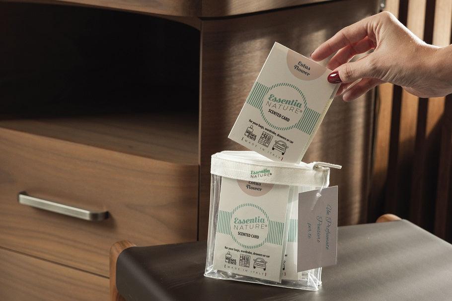 Die Essenzen werden dank eines speziellen Produktionsverfahrens direkt in das Silikon eingearbeitet; Die Karten enthalten kein Pulver oder Granulat.