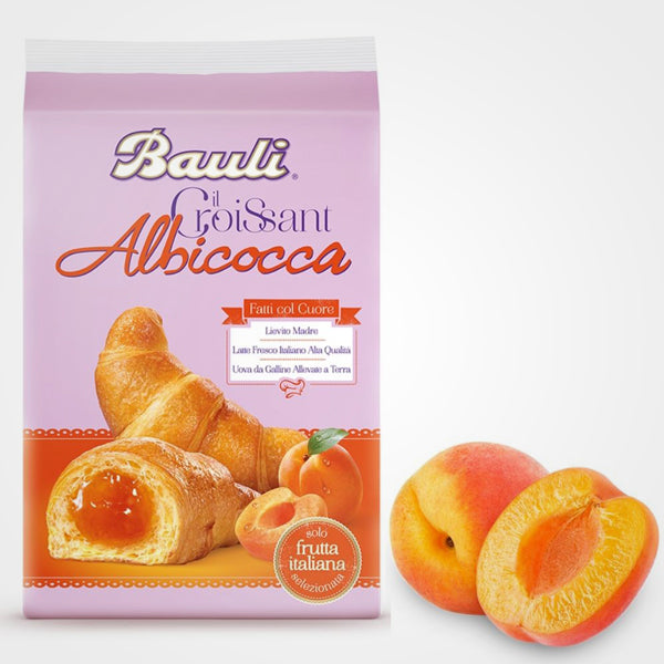 Croissant Albicocca Bauli Una dolce farcitura all'albicocca, all'interno di un impasto soffice e fragrante Il croissant piu' amato, da oggi con una nuova ricetta, ancora piu' soffice e gustosa. Il nostro lievito madre per un impasto soffice e irresistibile, accompagnato da una deliziosa farcitura di albicocche 100% italiane. Confezione da 10 pezzi da 50 gr cadauna