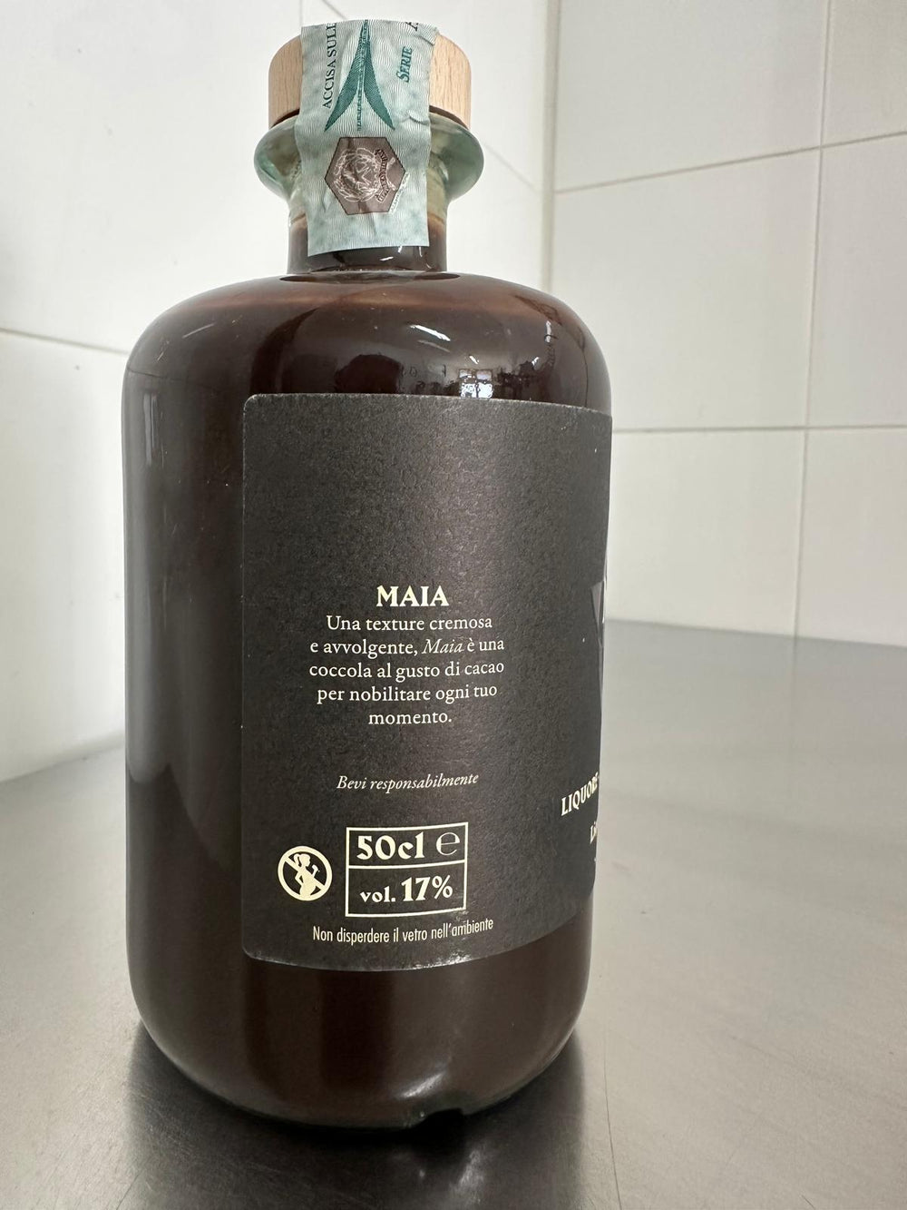 „Maia“ ist der Schokoladencremelikör von Liquorificio Gentile, verpackt in einer edlen Glasflasche mit Holzverschluss. Das dunkle Etikett erinnert an die Fülle und Intensität von Schokolade und bietet ein umhüllendes und authentisches Geschmackserlebnis – das Ergebnis einer leidenschaftlich überlieferten Handwerkstradition. Der Likör hat einen Alkoholgehalt von 17 % und ist in einer 50-cl-Flasche erhältlich.