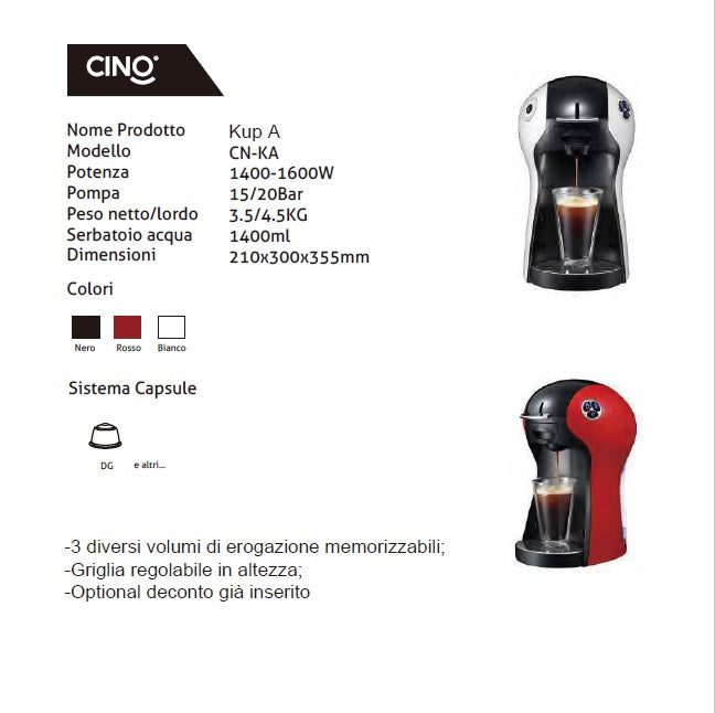 Macchina a capsule Compatibile Nescafé Dolce Gusto KUP-A by CINO